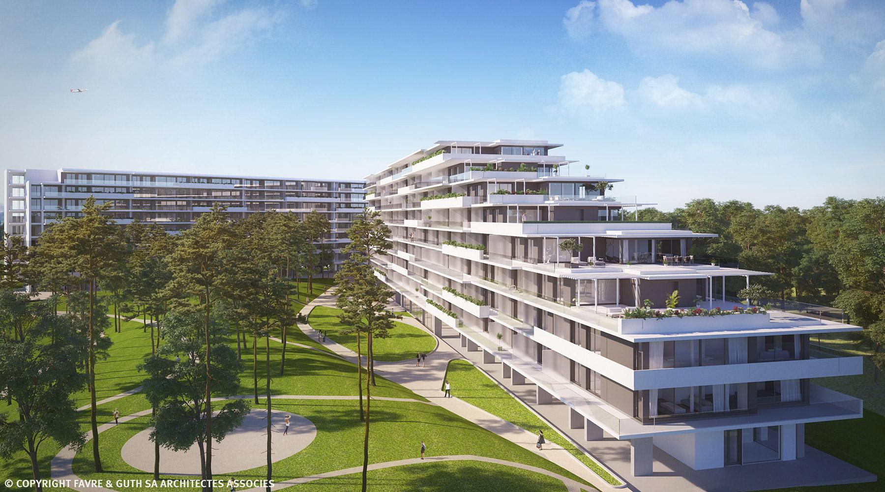 - 7500m2 de balcons à géométrie variable, en béton armé coulé sur place, dans certains cas avec des prédalles réalisées sur chantier.