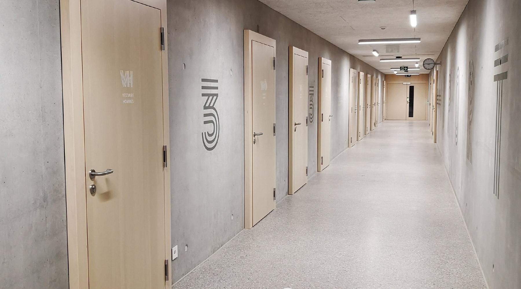 - Une salle de gymnastique, semi-enterrée (salle triple)