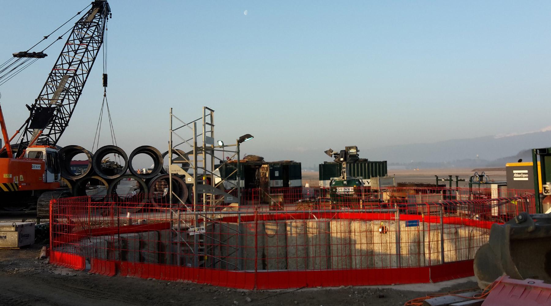 Chantier réalisé sur le site aéroportuaire (traversées sous la voie alpha, sous la zone de parcage des avions, sous la rte périphérique, rte de Ferney et Rte de Colovrex).
